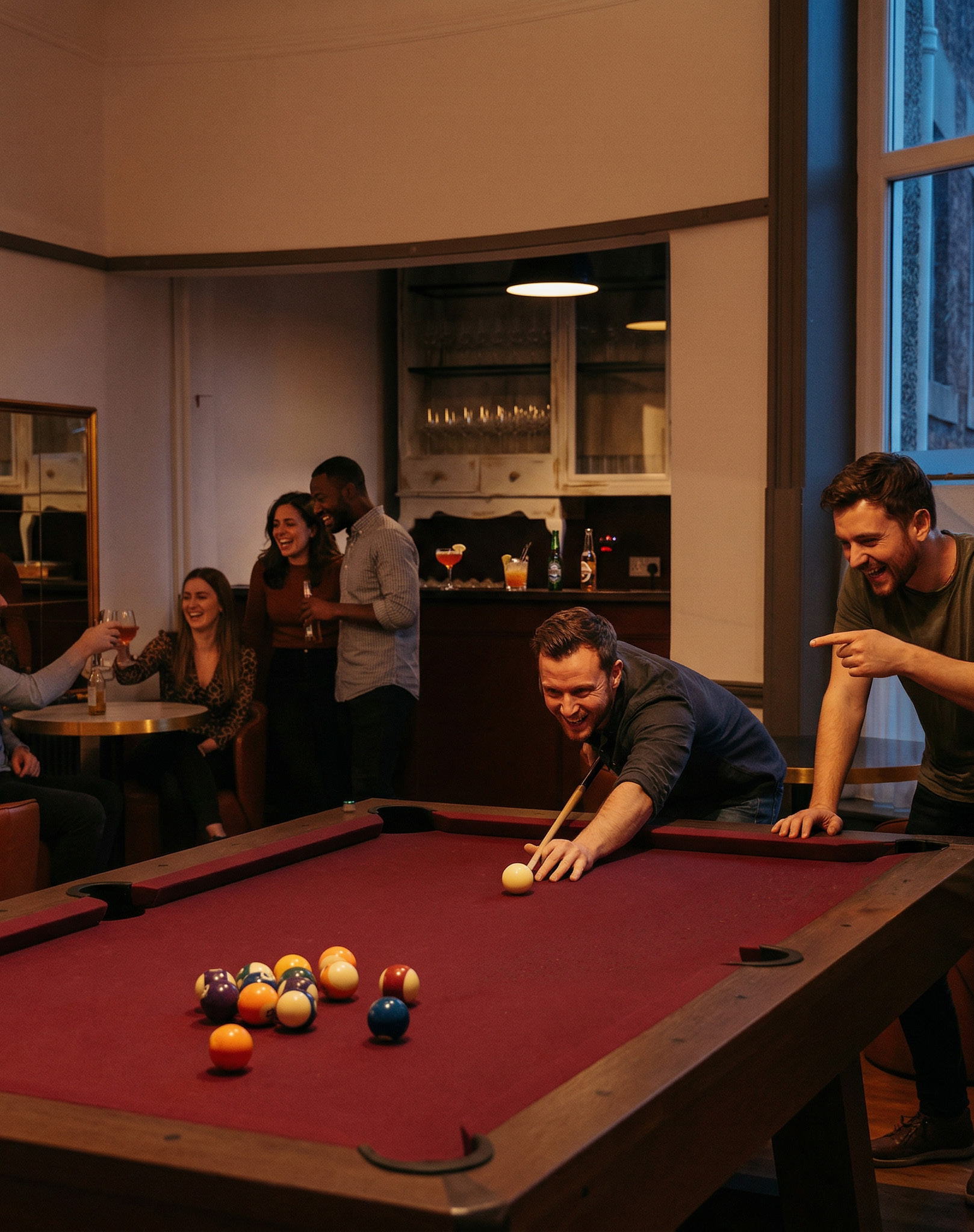Enjoy exclusive use of the pool table and reserved seating in The Vault