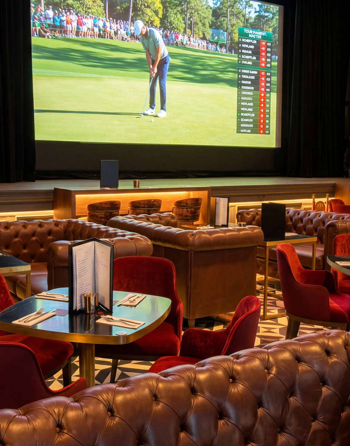 Your own private playground—perfect for up to 8 guests. Settle into a dedicated space with exclusive simulator access, where you can watch the game or jump into golf, soccer, football, baseball, and more, all with full food and beverage service at the ready.