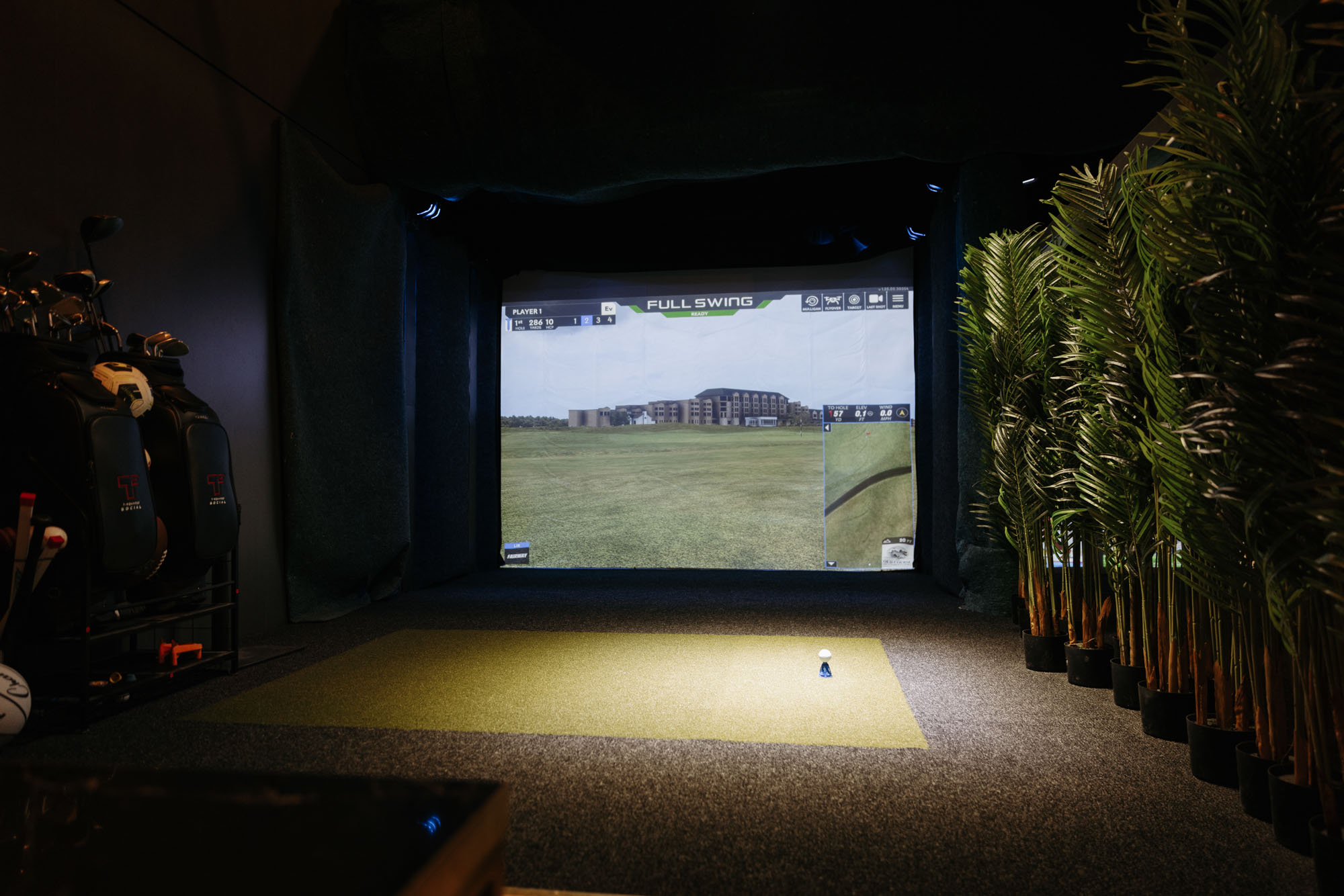 Here's something no pub, no hotel bar, and nowhere else in St Andrews can offer during Masters week: a full-swing golf simulator running in the same room as the coverage, on the biggest screen in town.